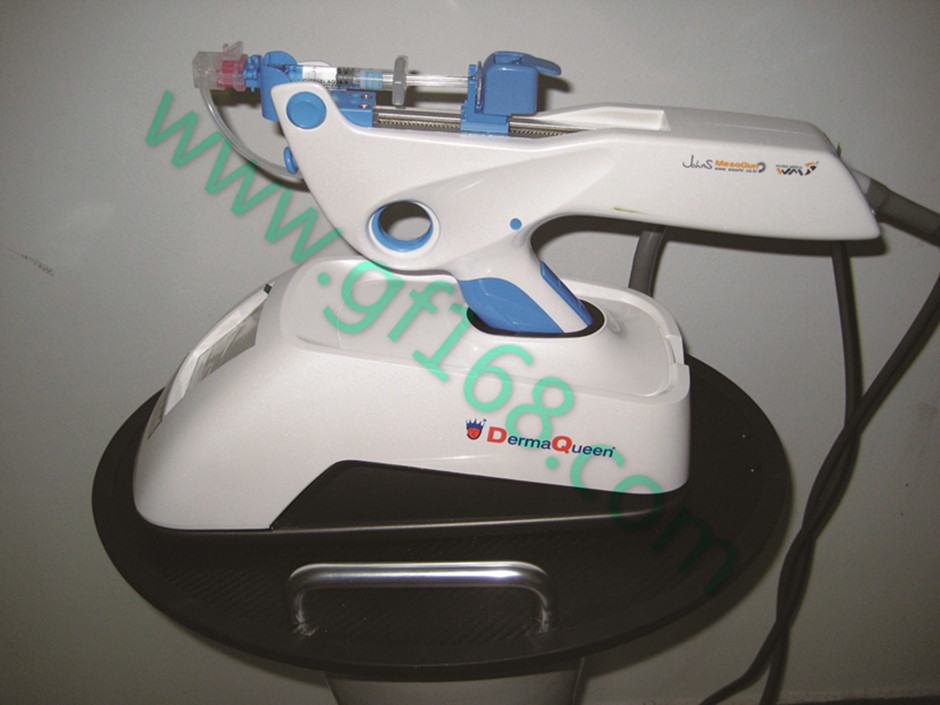 韩国最新研制的DermaQueen,采用声控负压技术,可以准确无误的在真皮层1.28mm深度下补充进肌肤所需营养物,它的原理是在微针进入前利用声压机将皮肤稍微地提起,使得皮肤维持紧实后针头进入到准确的深度用多针来注入营养物(如玻尿酸和胶原蛋白)。注入量的调节是在装备的后面OLED画面上便可简单的按键调节。另外,微针在出来前就已经放开了注射器的压力,因此不会带来营养物的损耗。嫩肤皇后(Derma Queen)属于国际皮肤美容科技的最新突破,是爱美一族的美丽福音。